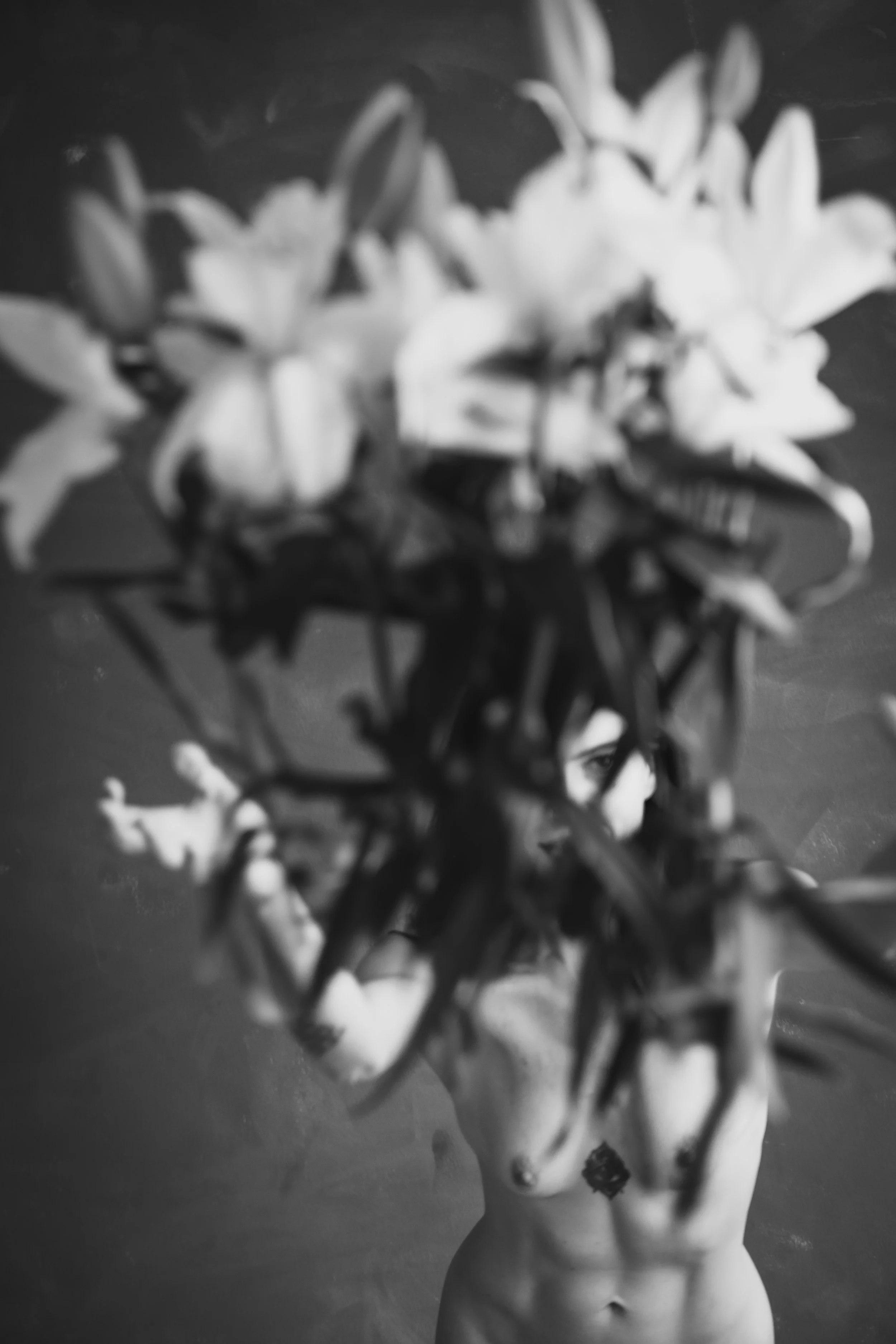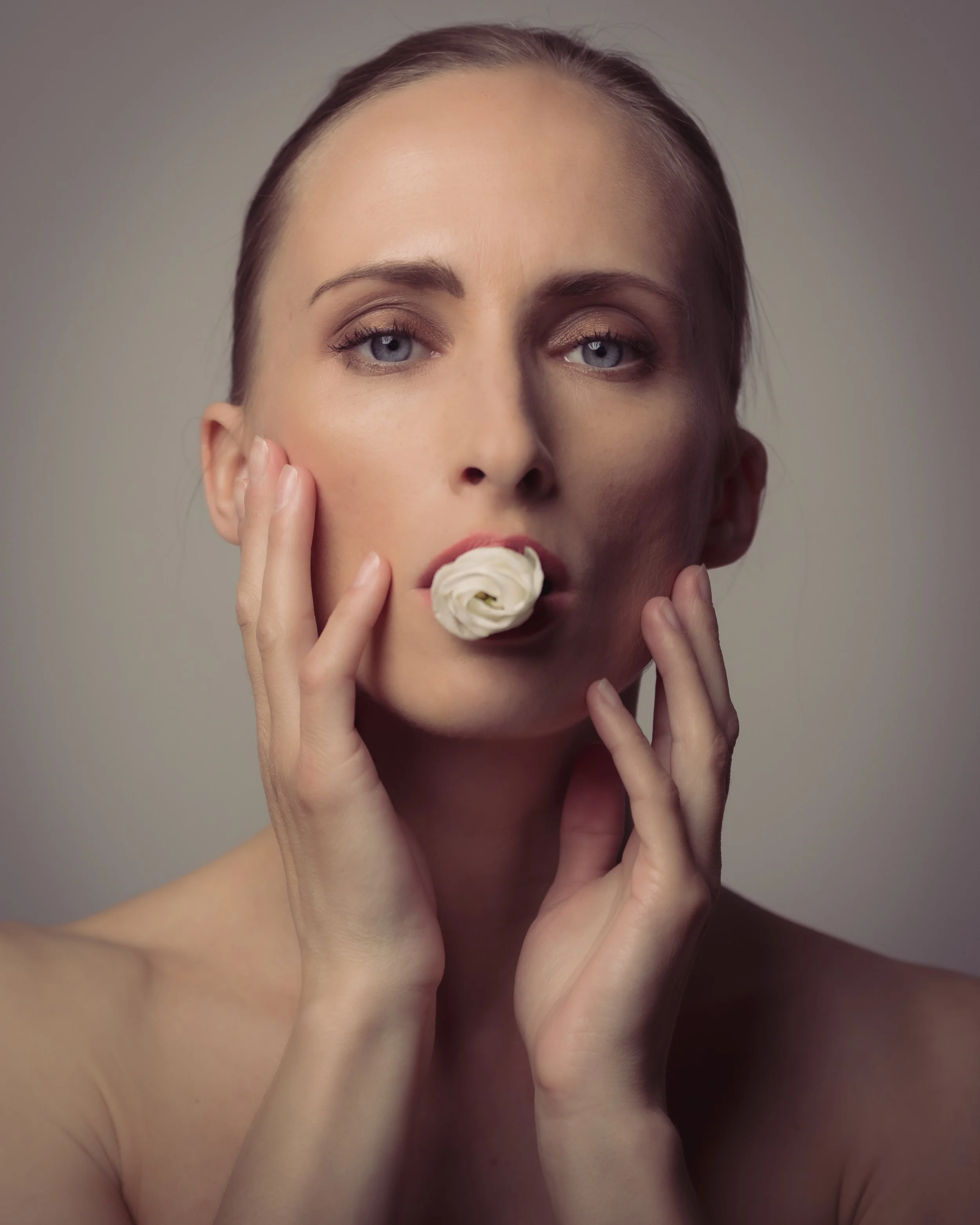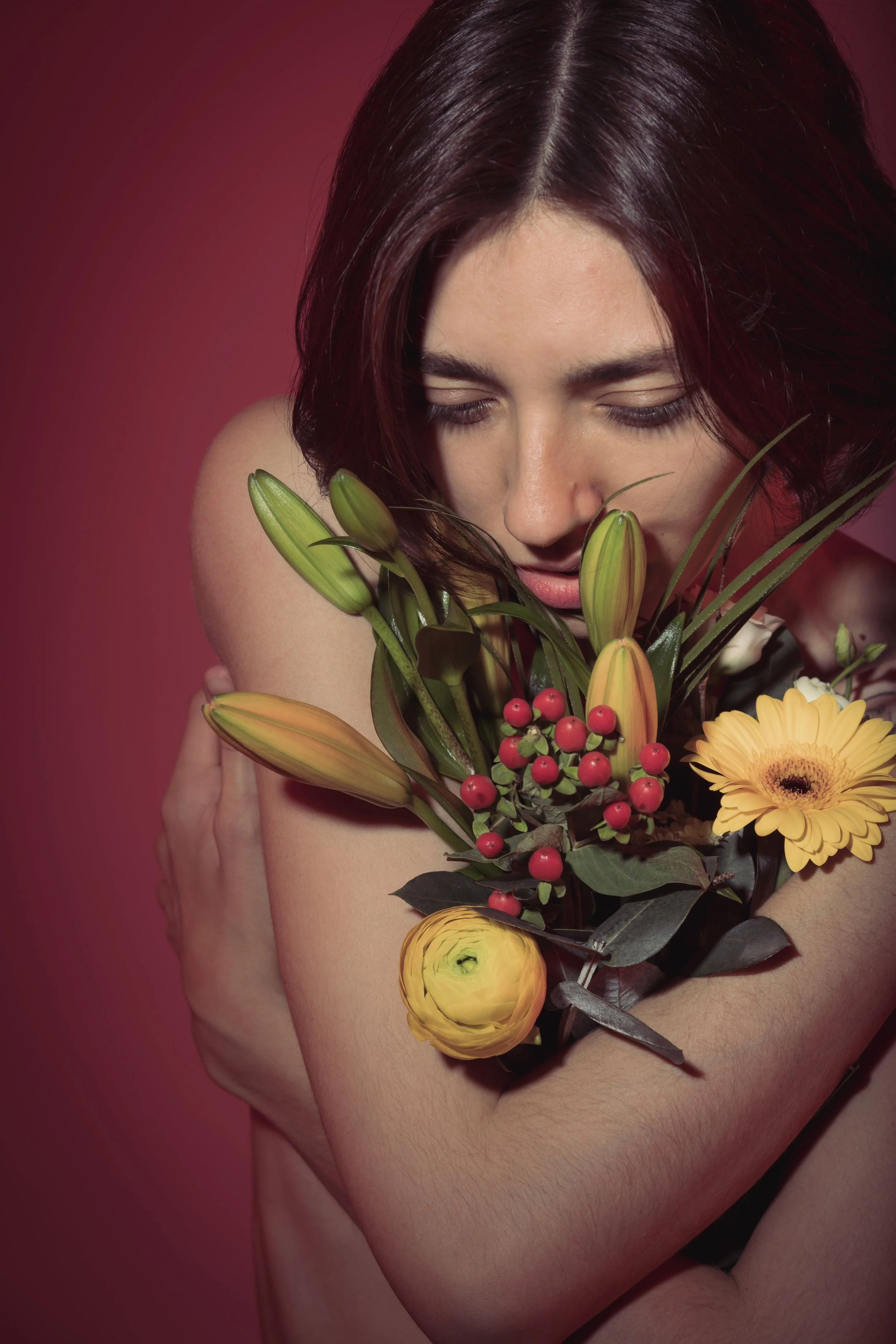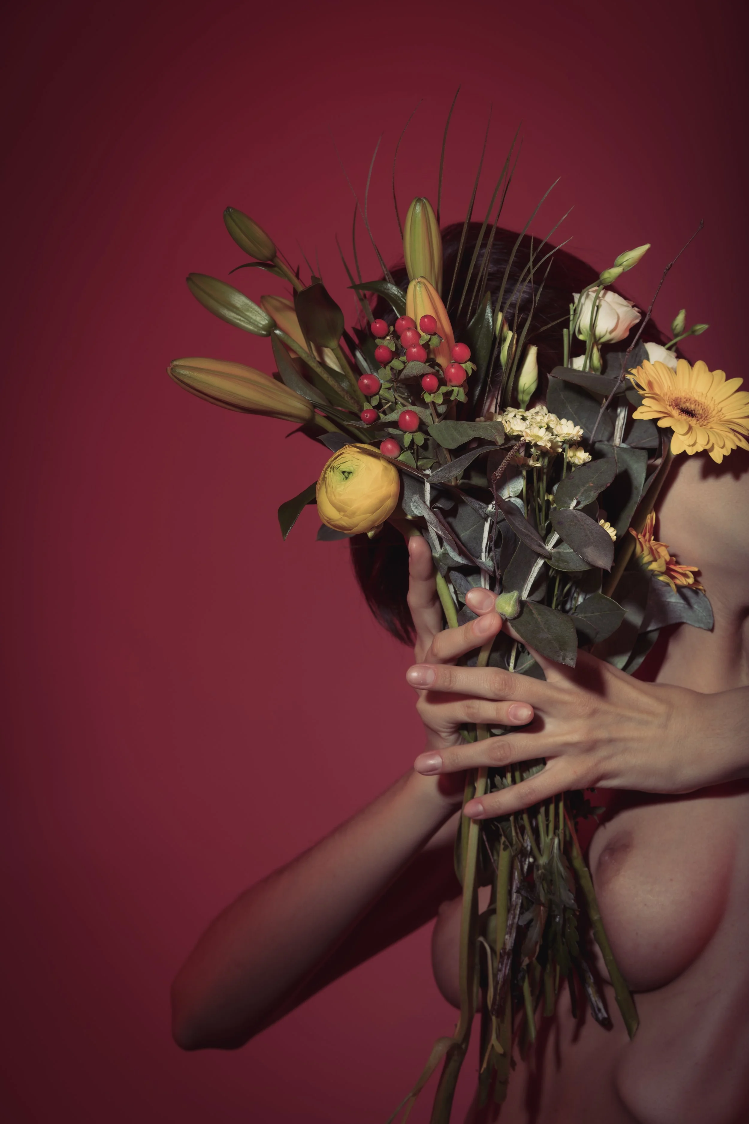 Bei diesem Fotoshooting stehen Farben und Formen der Blumen im Zusammenspiel mit dem Körper im Zentrum.
