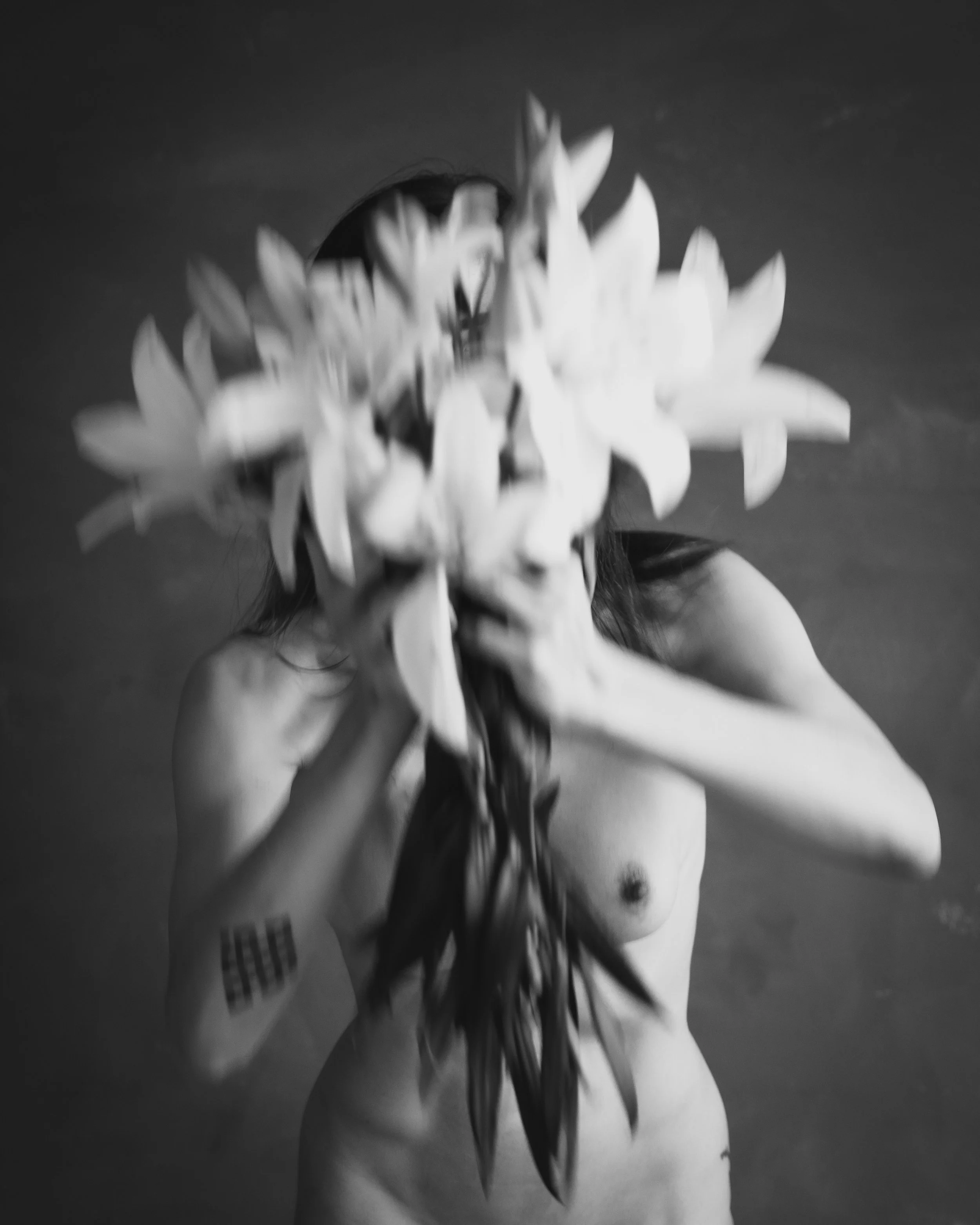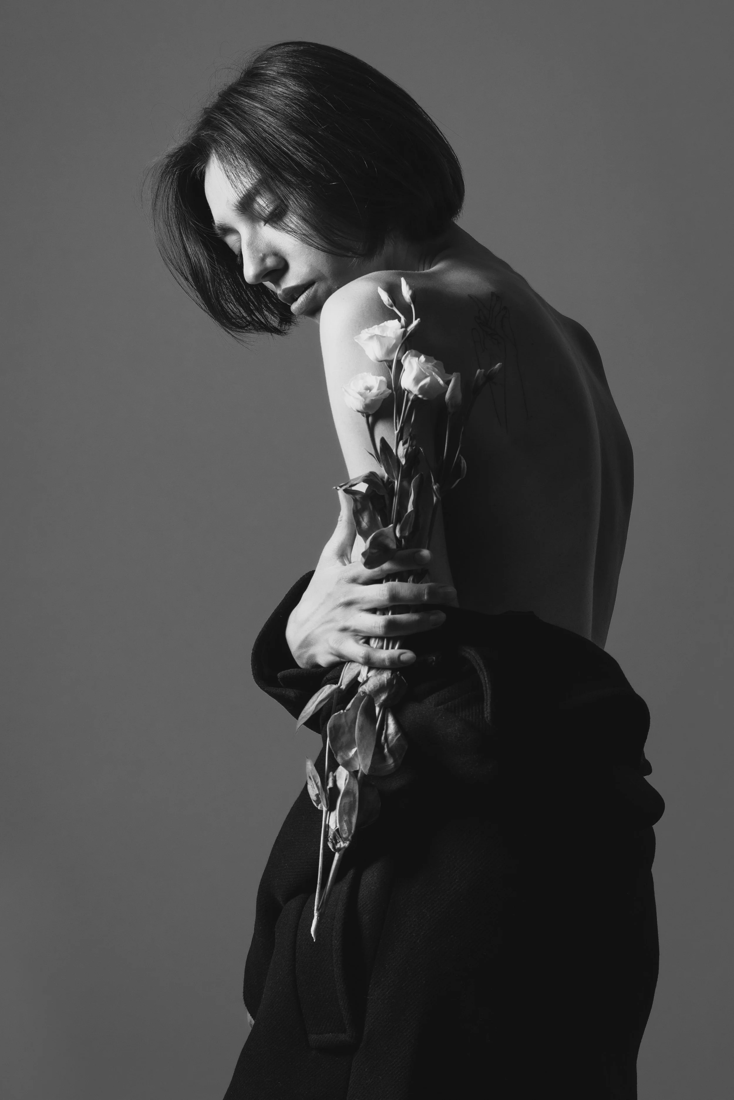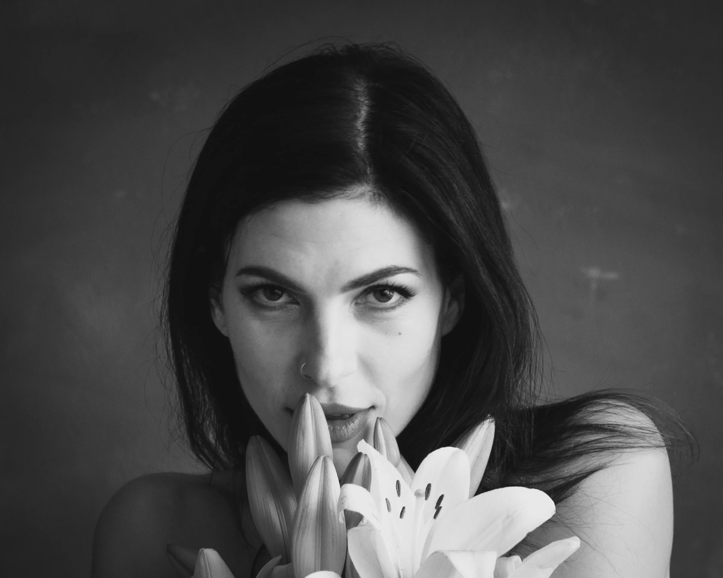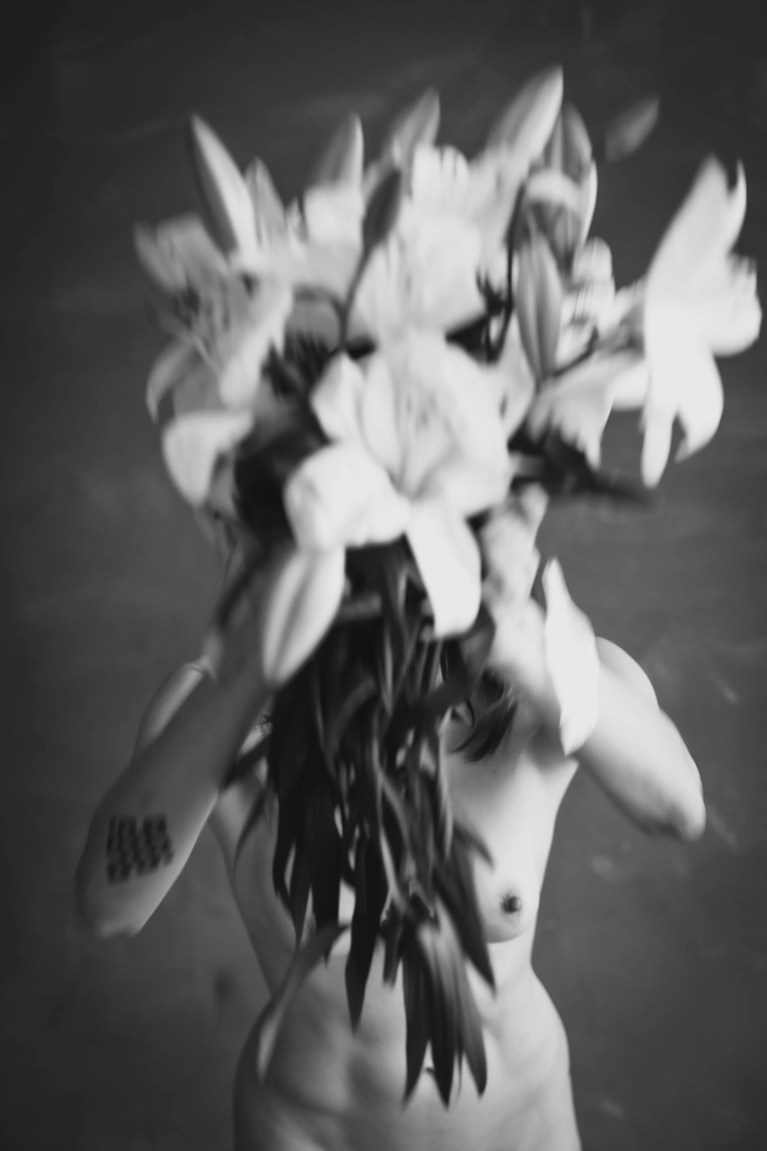 Bei diesem Fotoshooting stehen Farben und Formen der Blumen im Zusammenspiel mit dem Körper im Zentrum.
