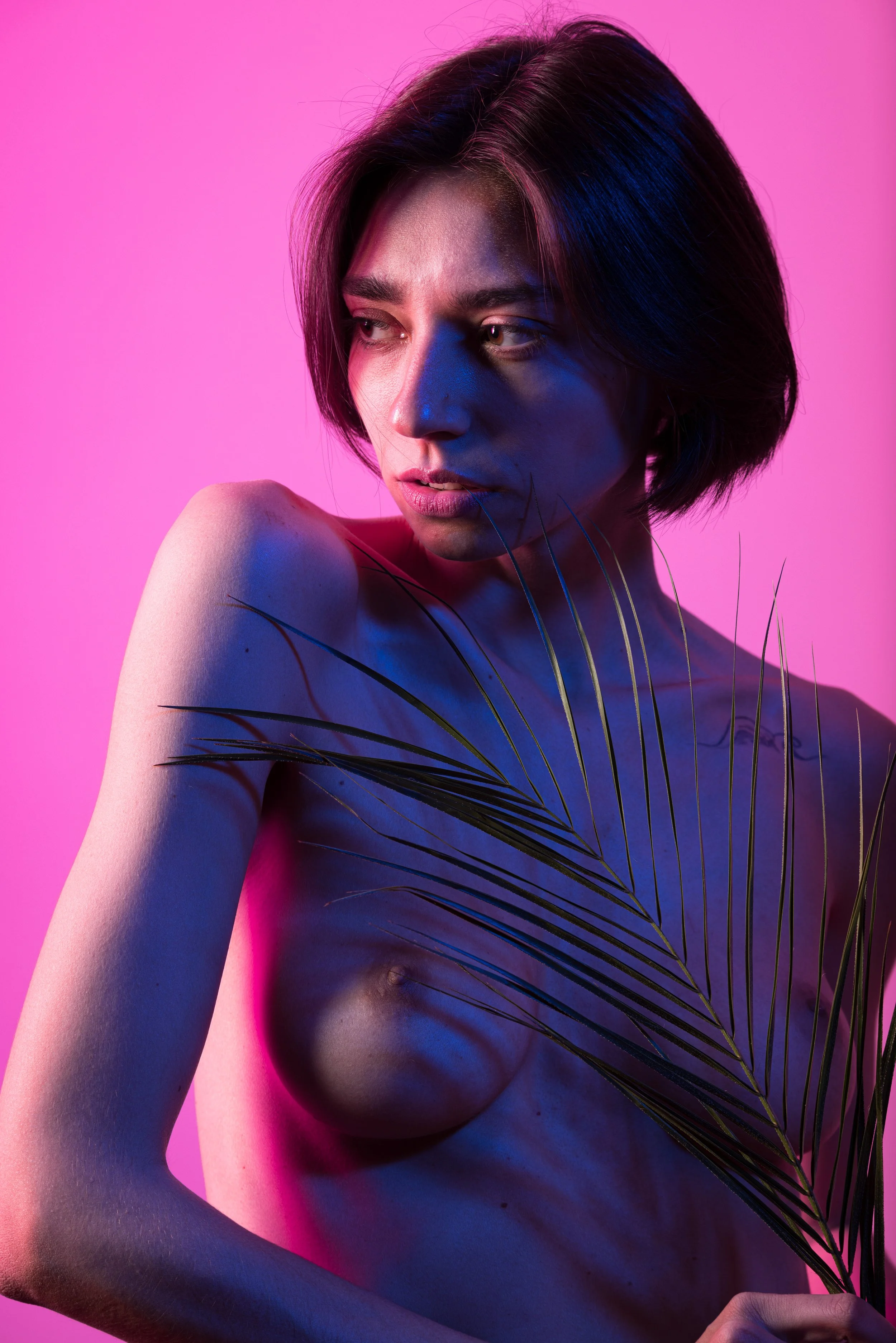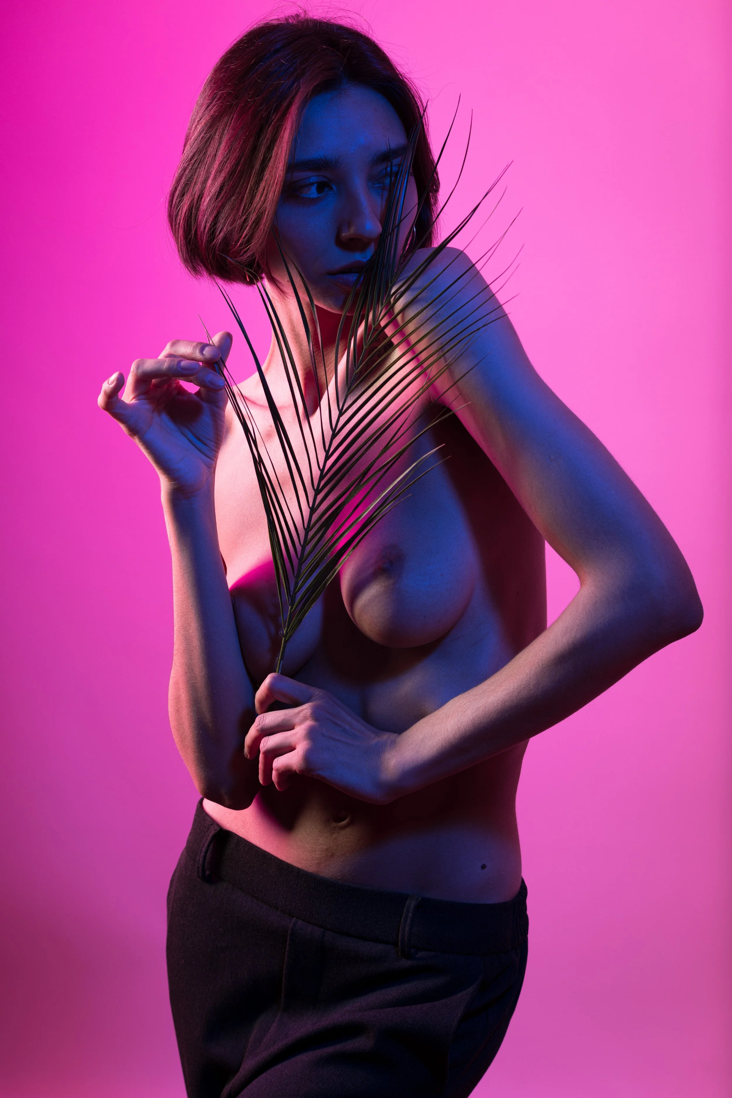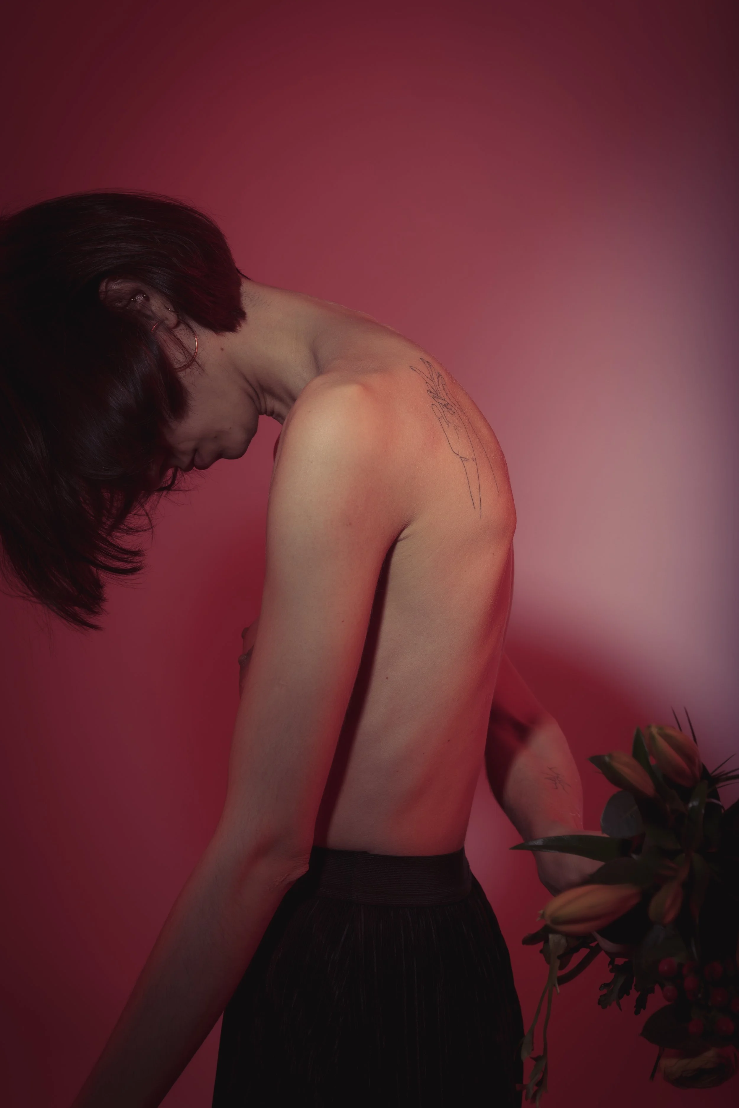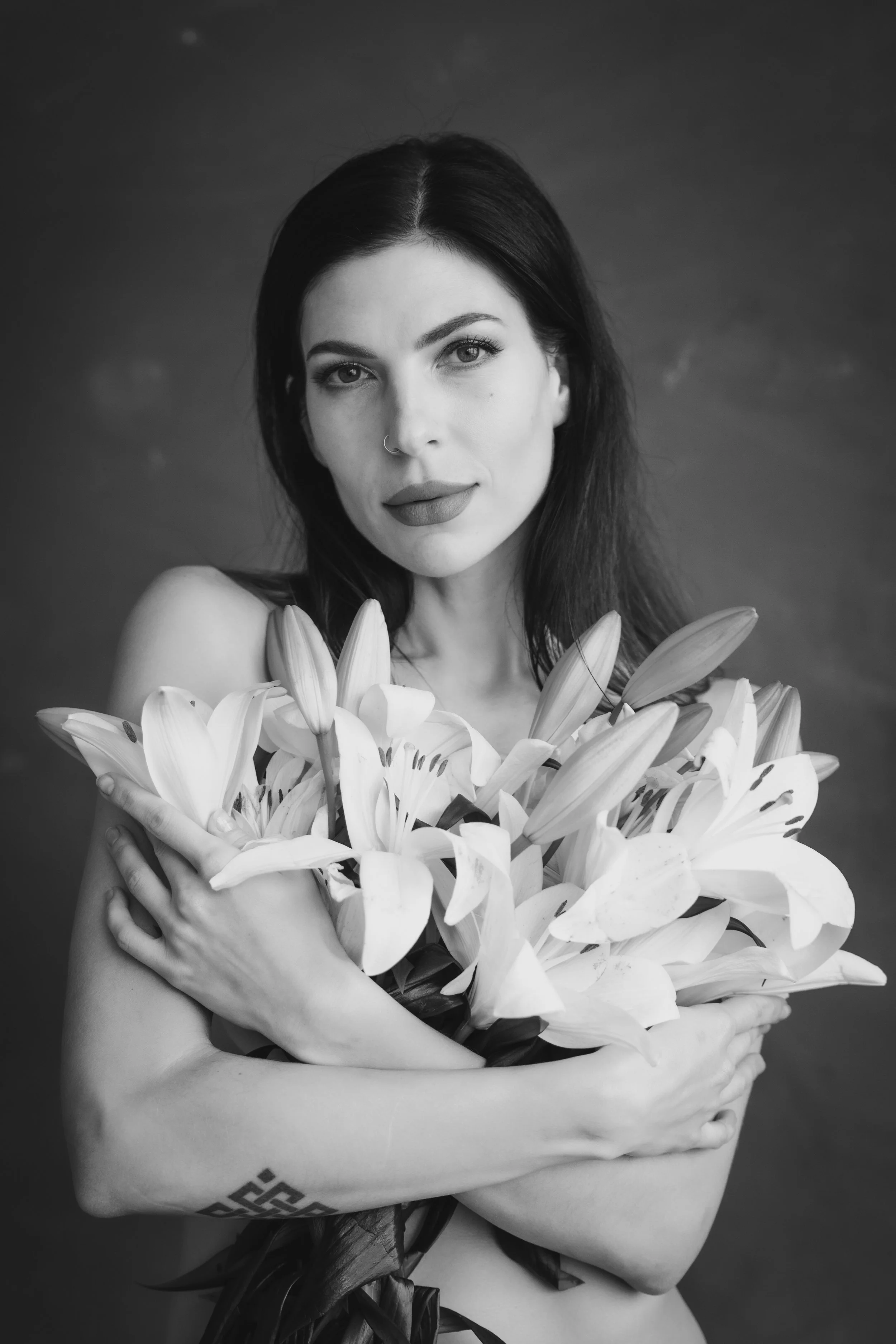 Bei diesem Fotoshooting stehen Farben und Formen der Blumen im Zusammenspiel mit dem Körper im Zentrum.