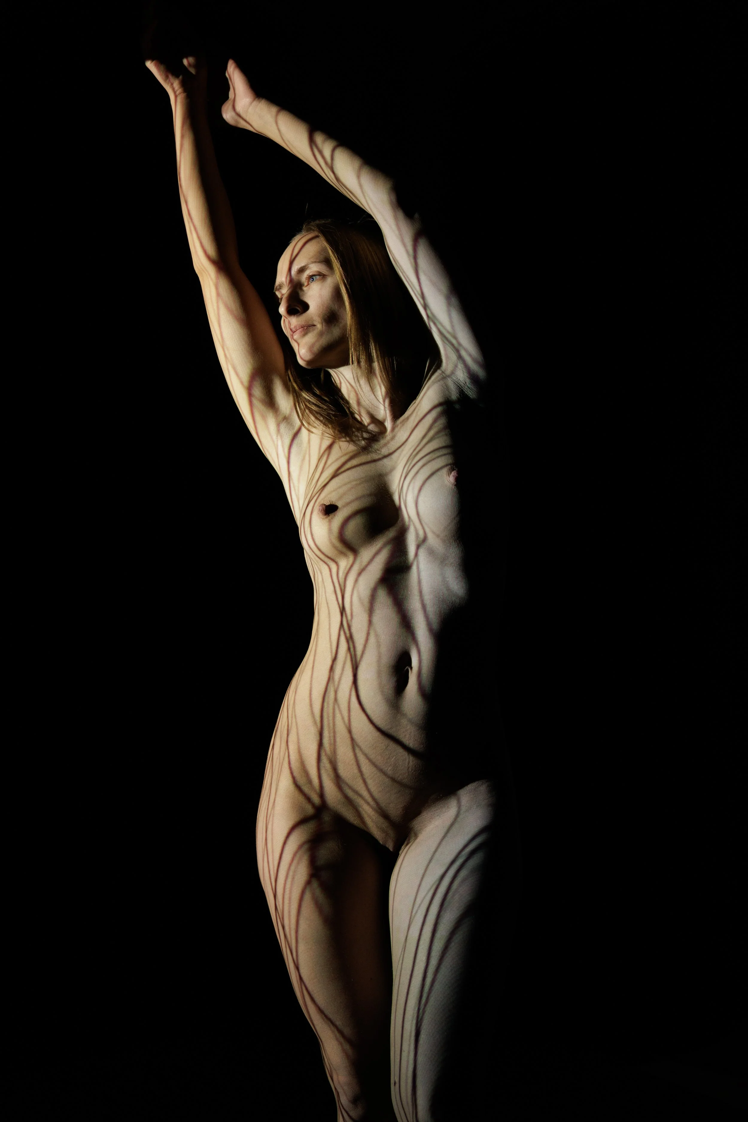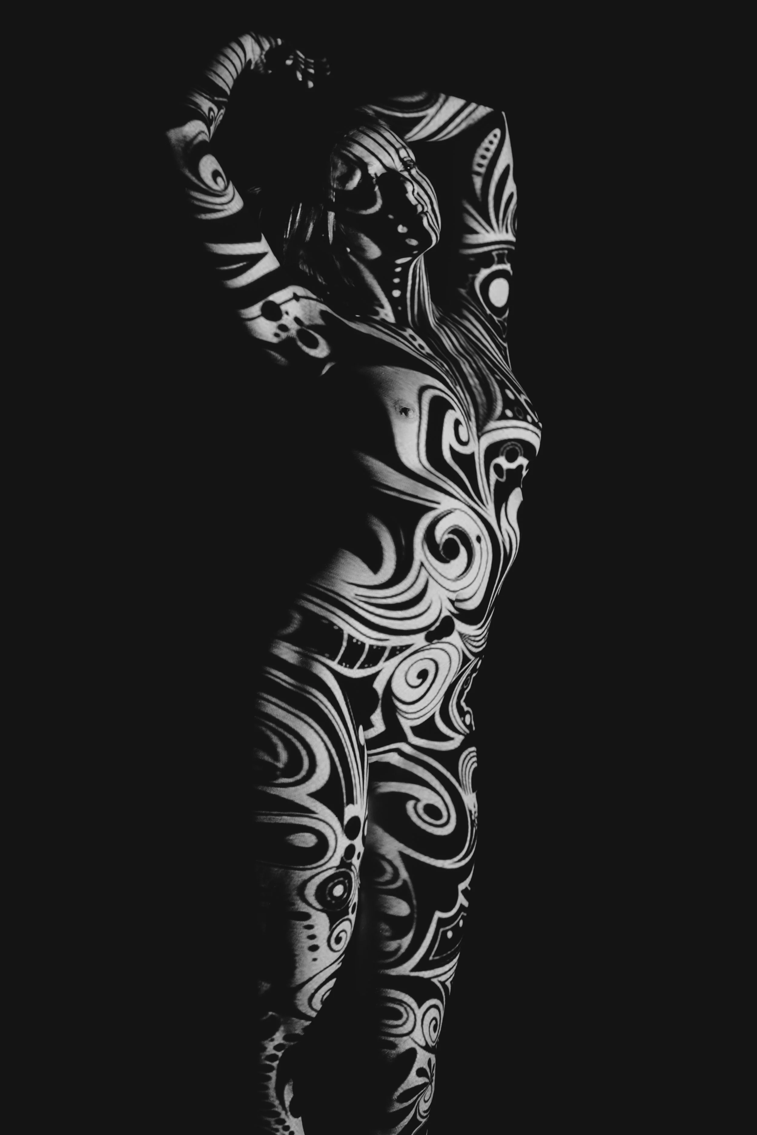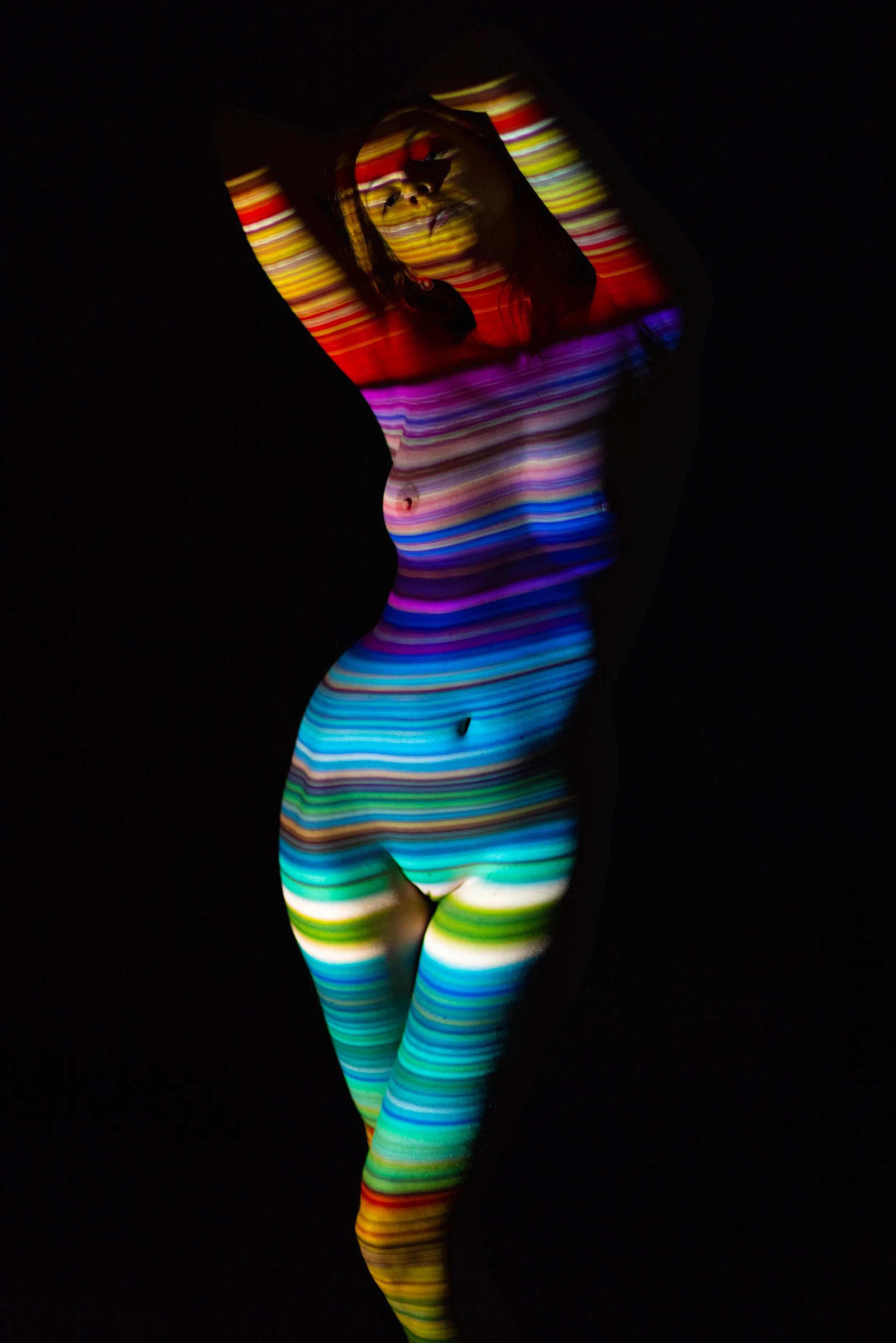 Durch die Projektion von diesen verschiedenen Mustern auf deine nackte Haut entstehen fantasievolle und spektakuläre surreale Kunstwerke.