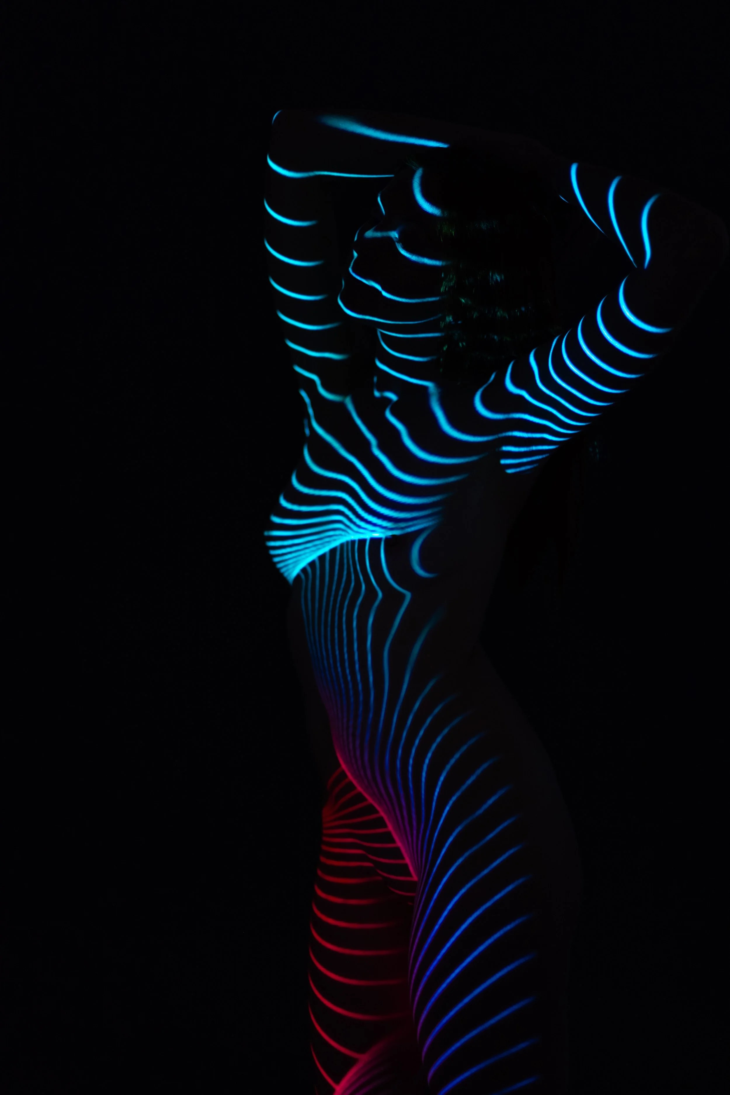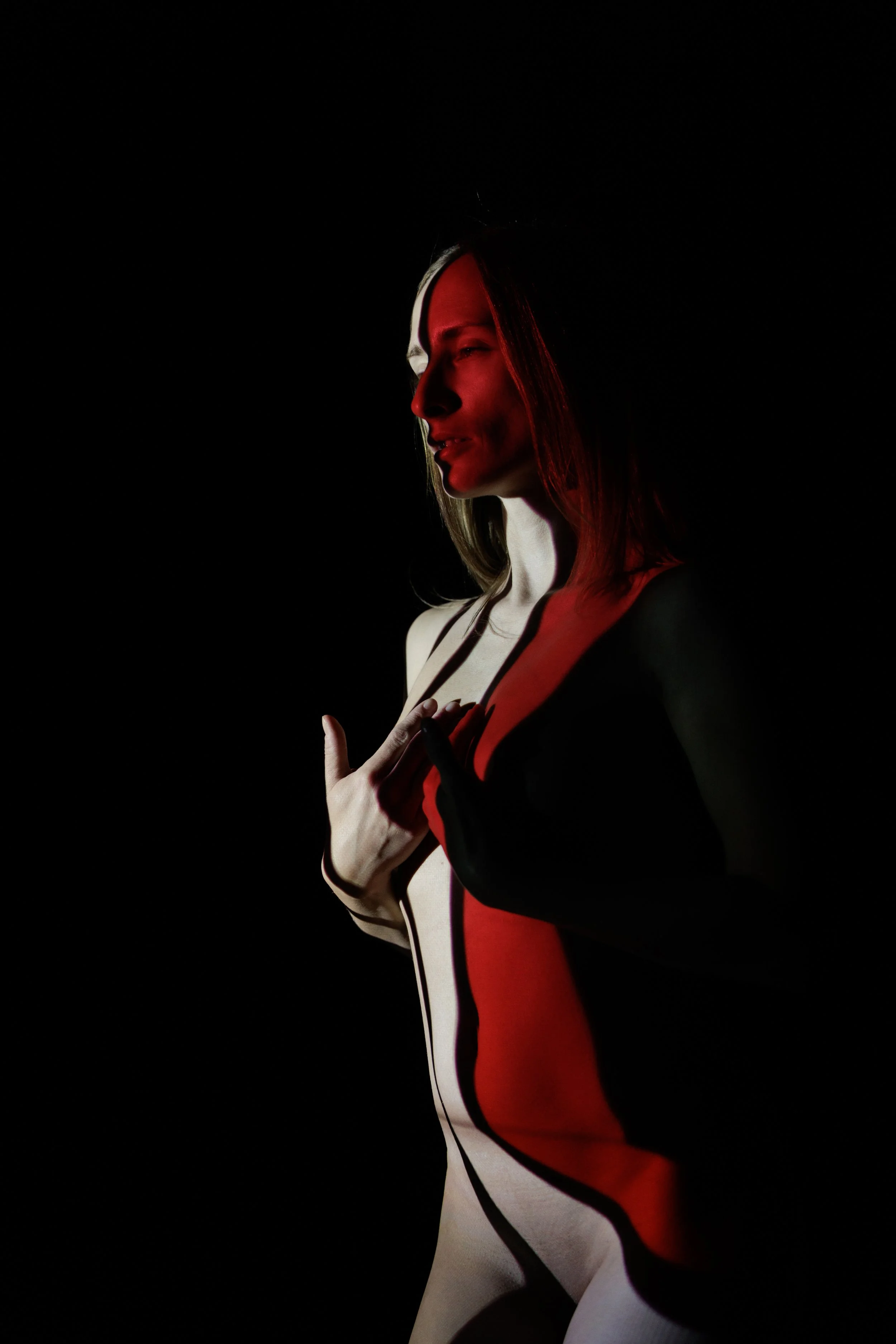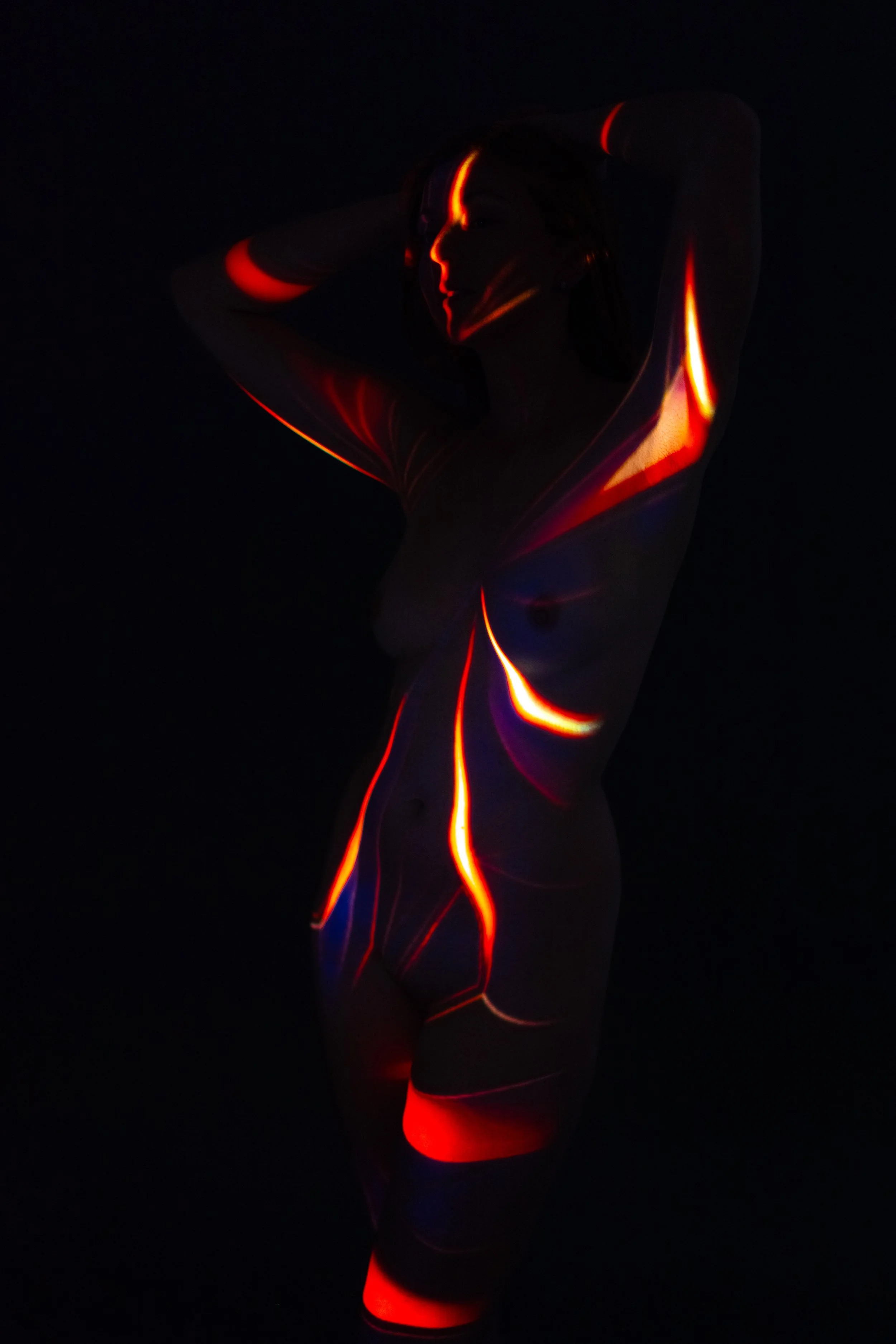 Durch die Projektion von diesen verschiedenen Mustern auf deine nackte Haut entstehen fantasievolle und spektakuläre surreale Kunstwerke.
