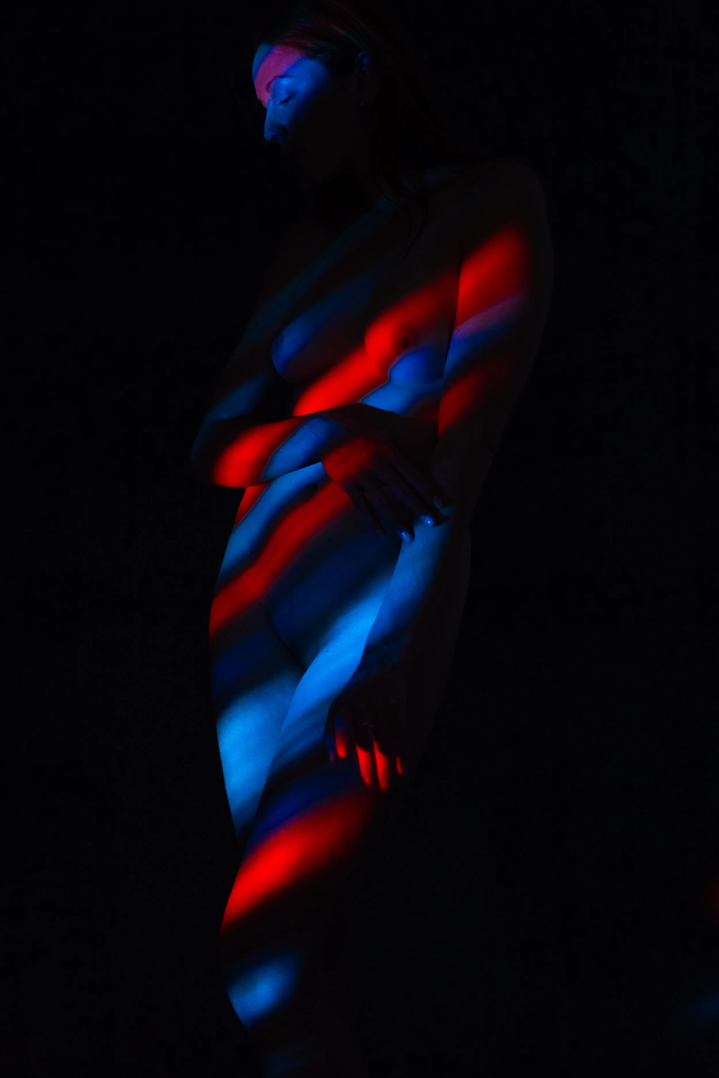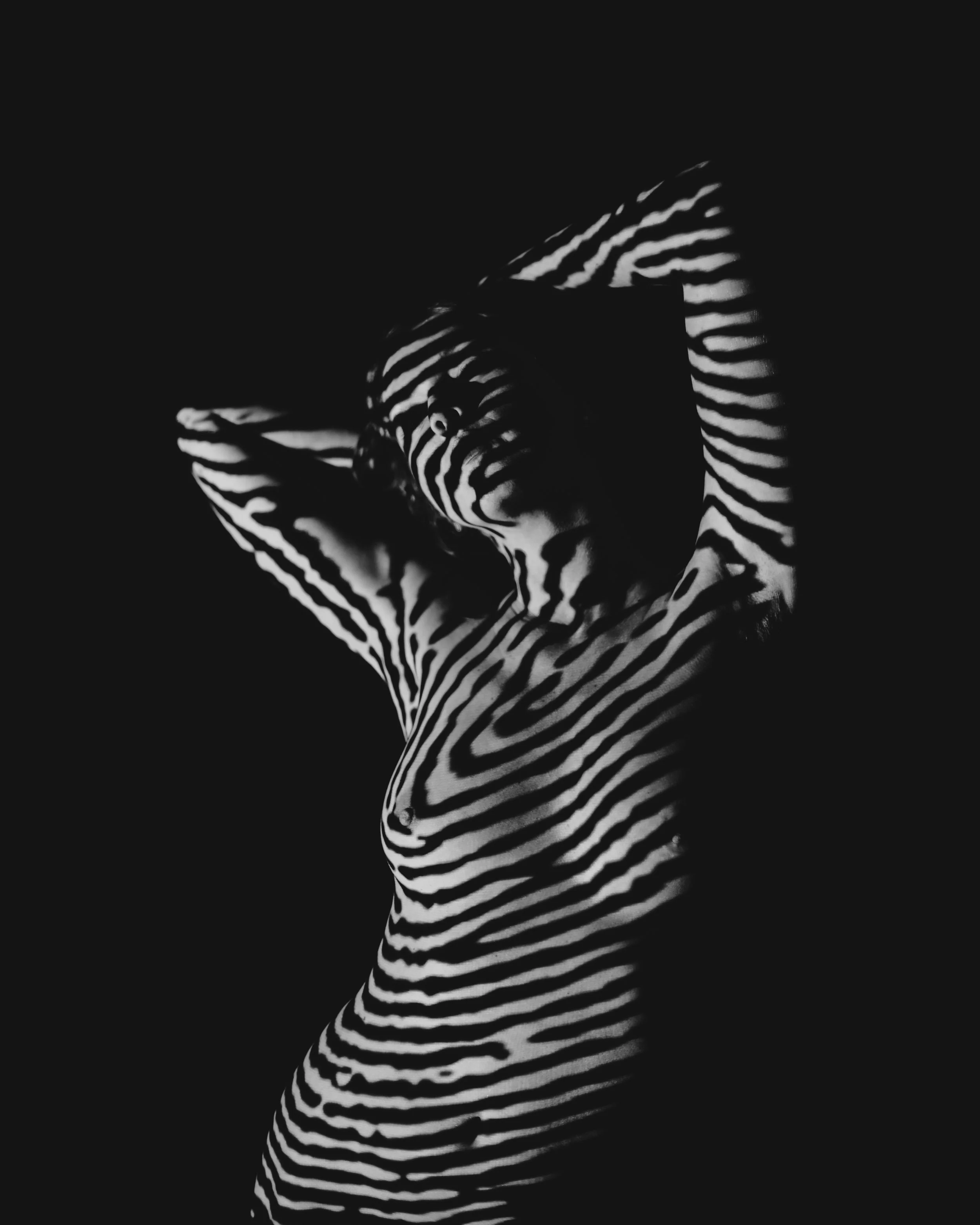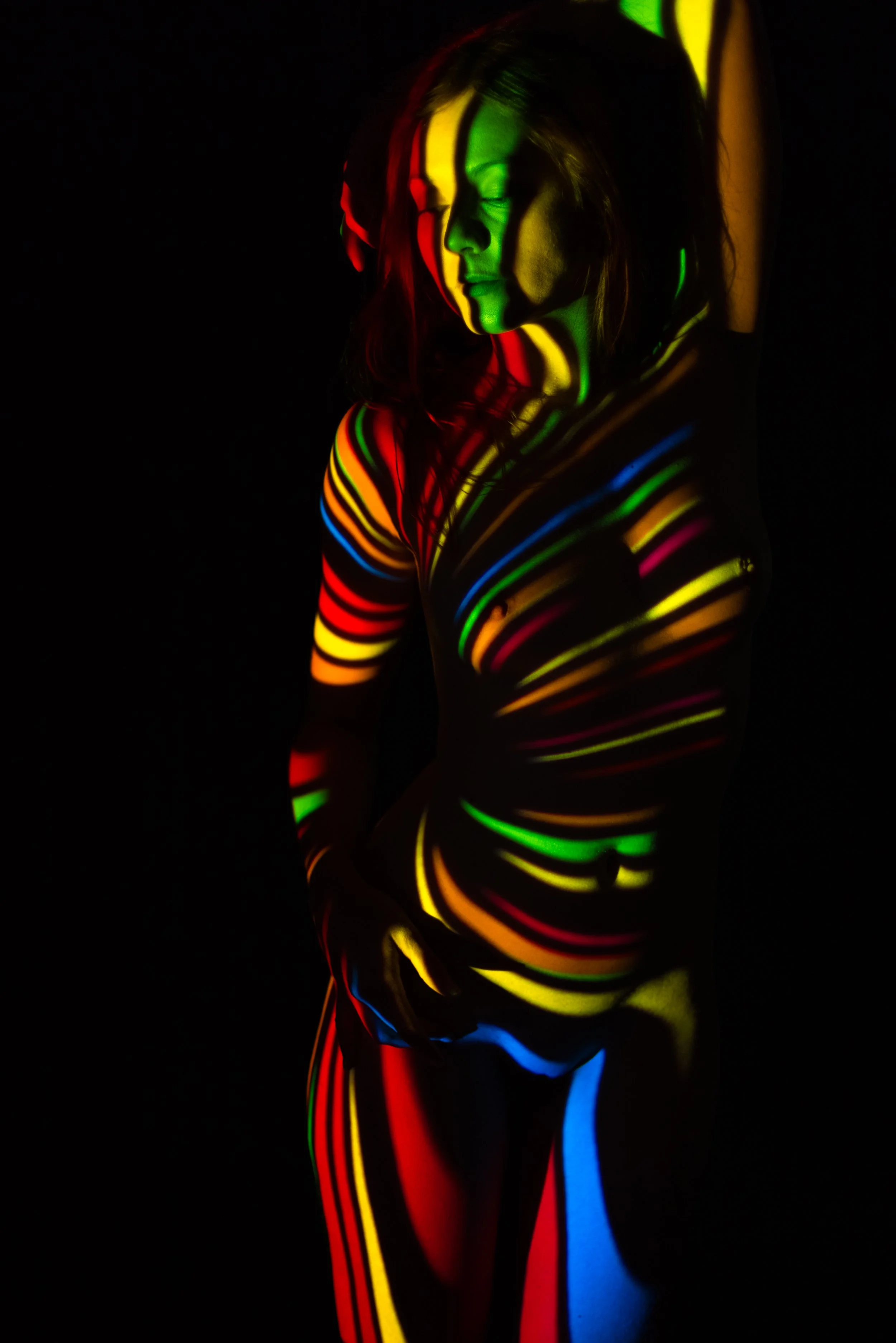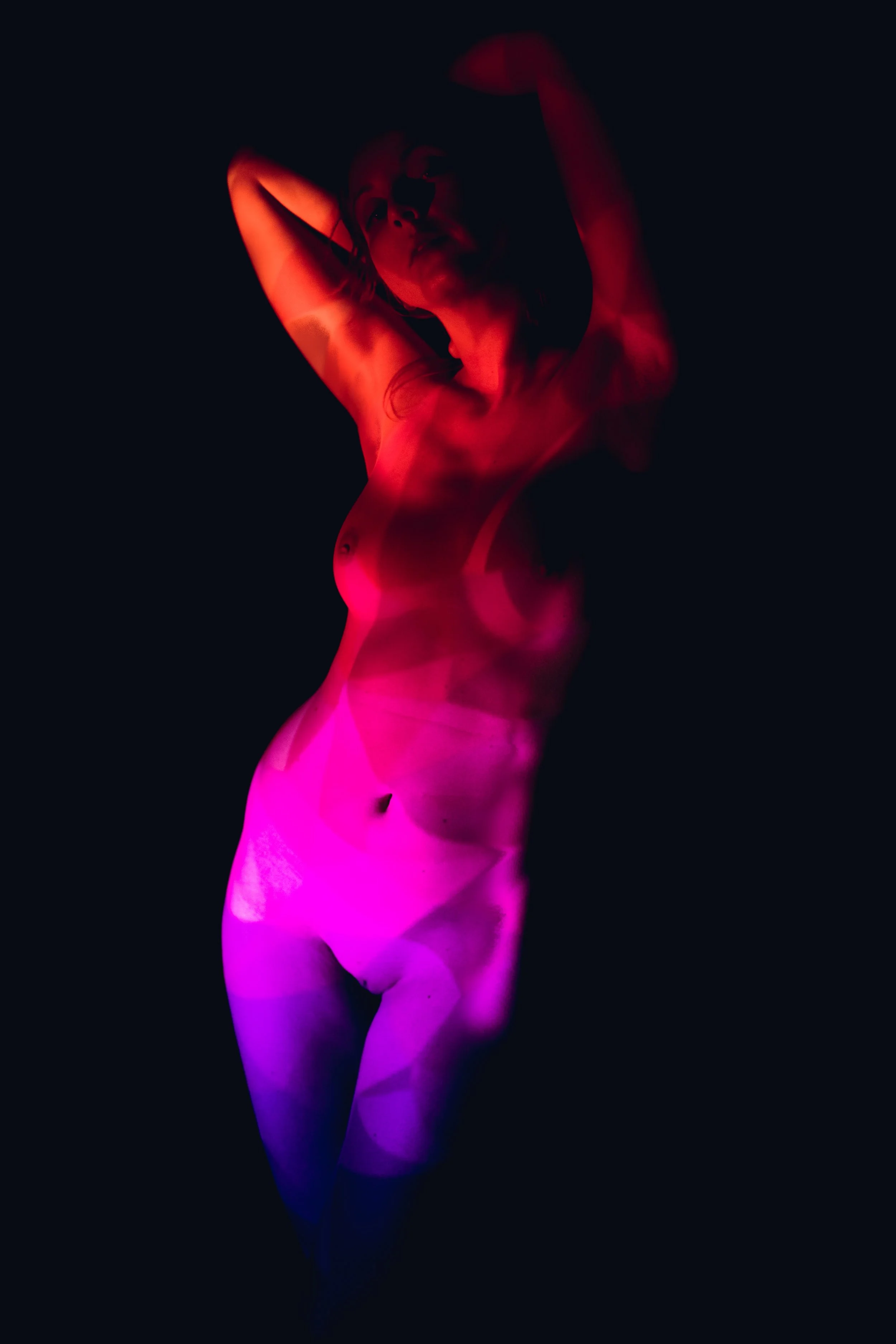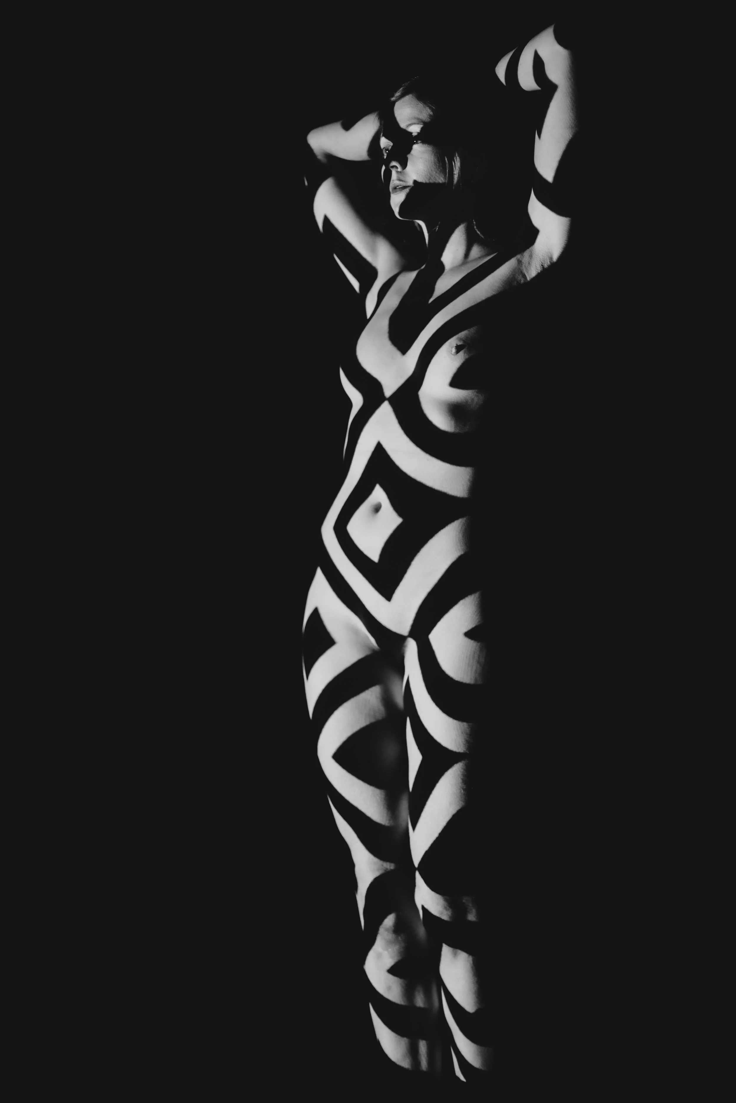 Bei diesem Fotoshooting stehen Farben, Formen, Muster und Kreativität im Zentrum. Am Laptop wählen wir gemeinsam Muster-Hintergründe aus, die dann mithilfe eines Beamers auf deinen Körper projiziert werden. Es scheint dann beinahe so, als hättest du ein Bodypainting bekommen.