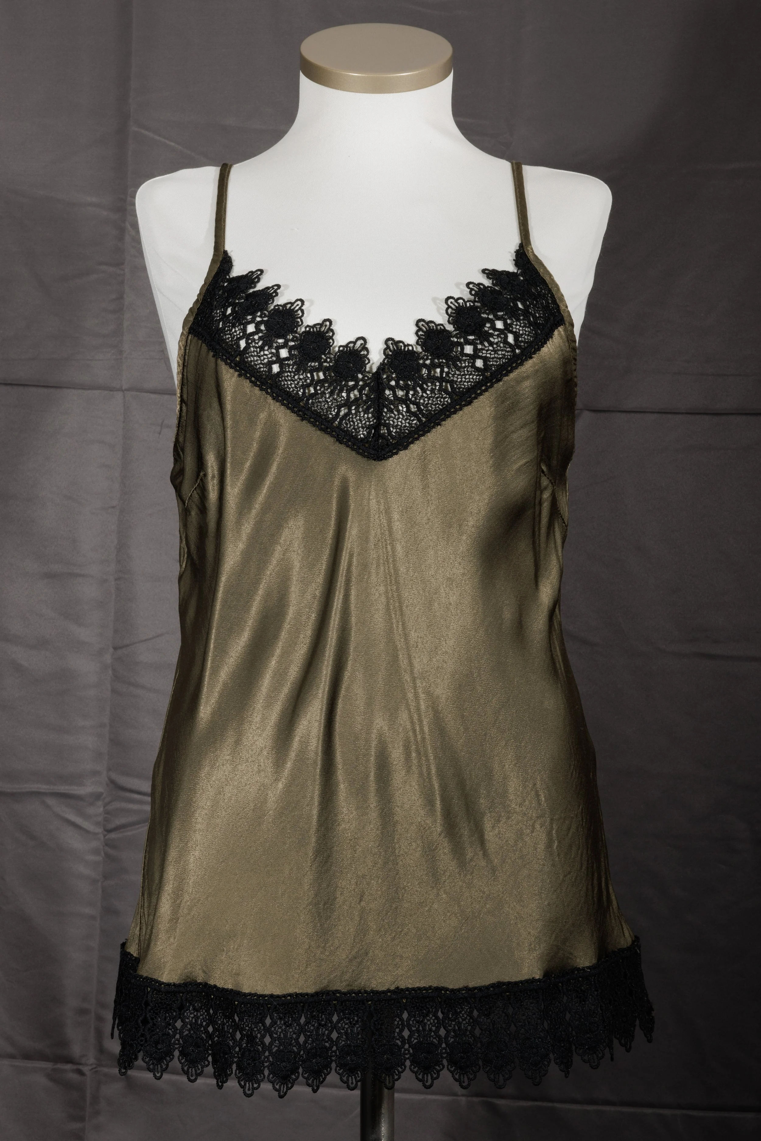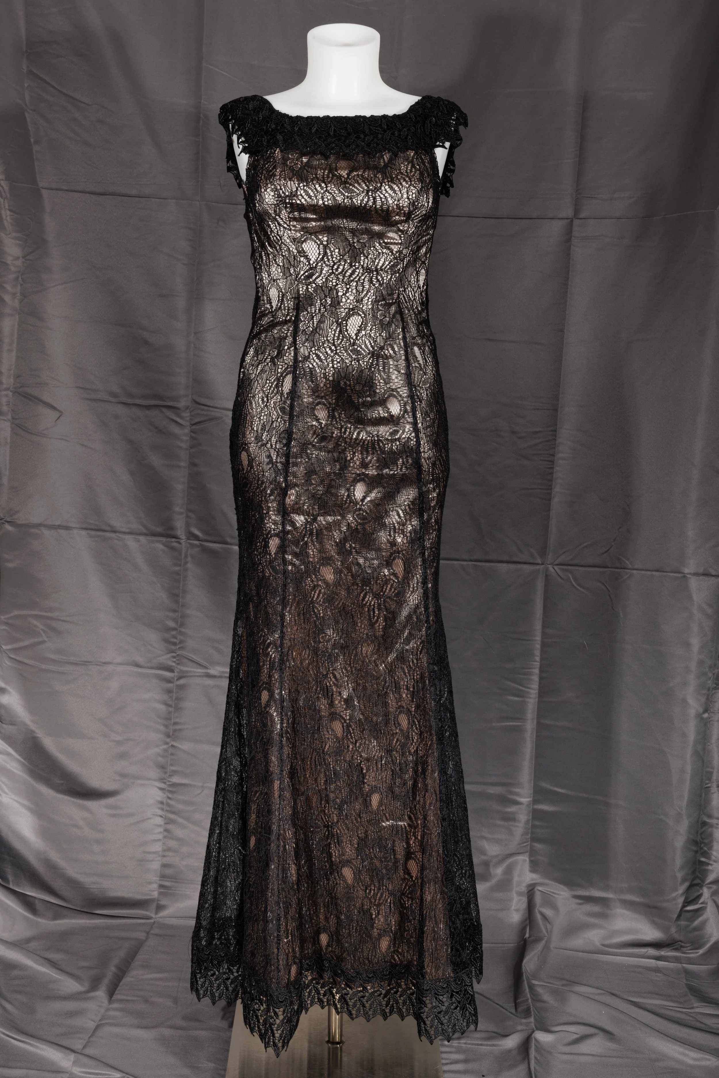 Eng anliegendes Spitzenkleid mit Unterkleid, schwarz-bronze, Grösse XS-S