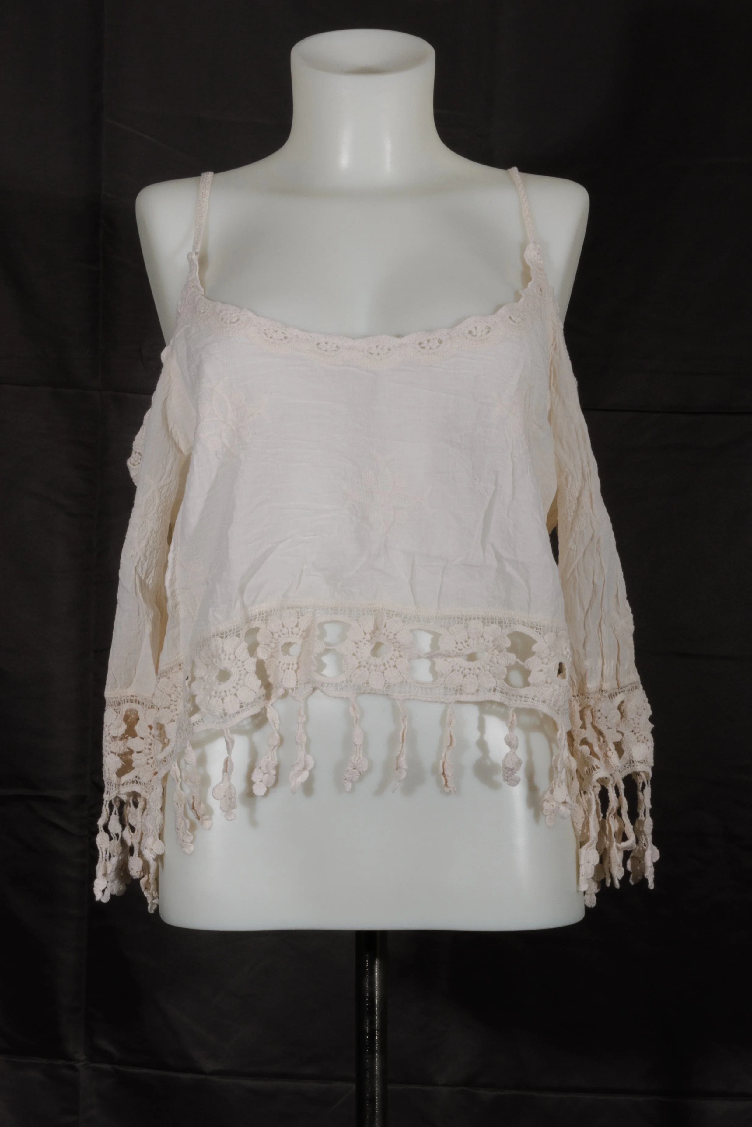Boho-Top mit Fransen, Baumwolle, beige, Grösse S-M