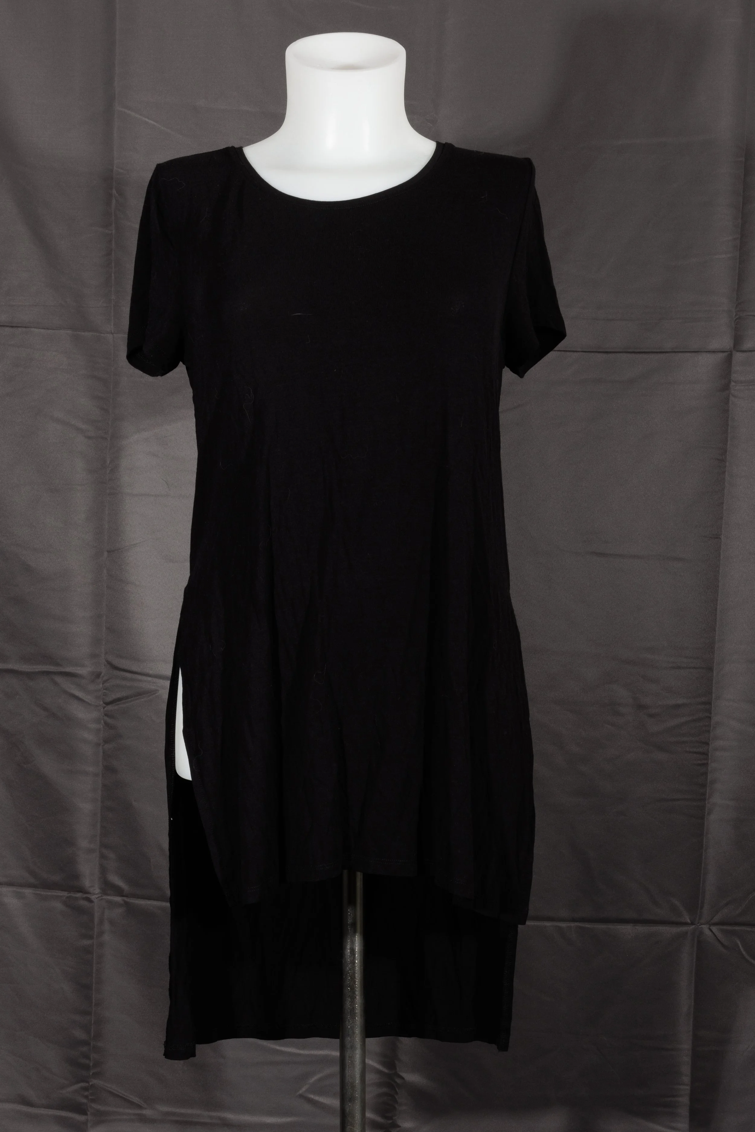Schwarzes Long-Shirt mit Seitenschlitzen, Baumwolle, Grösse S-M