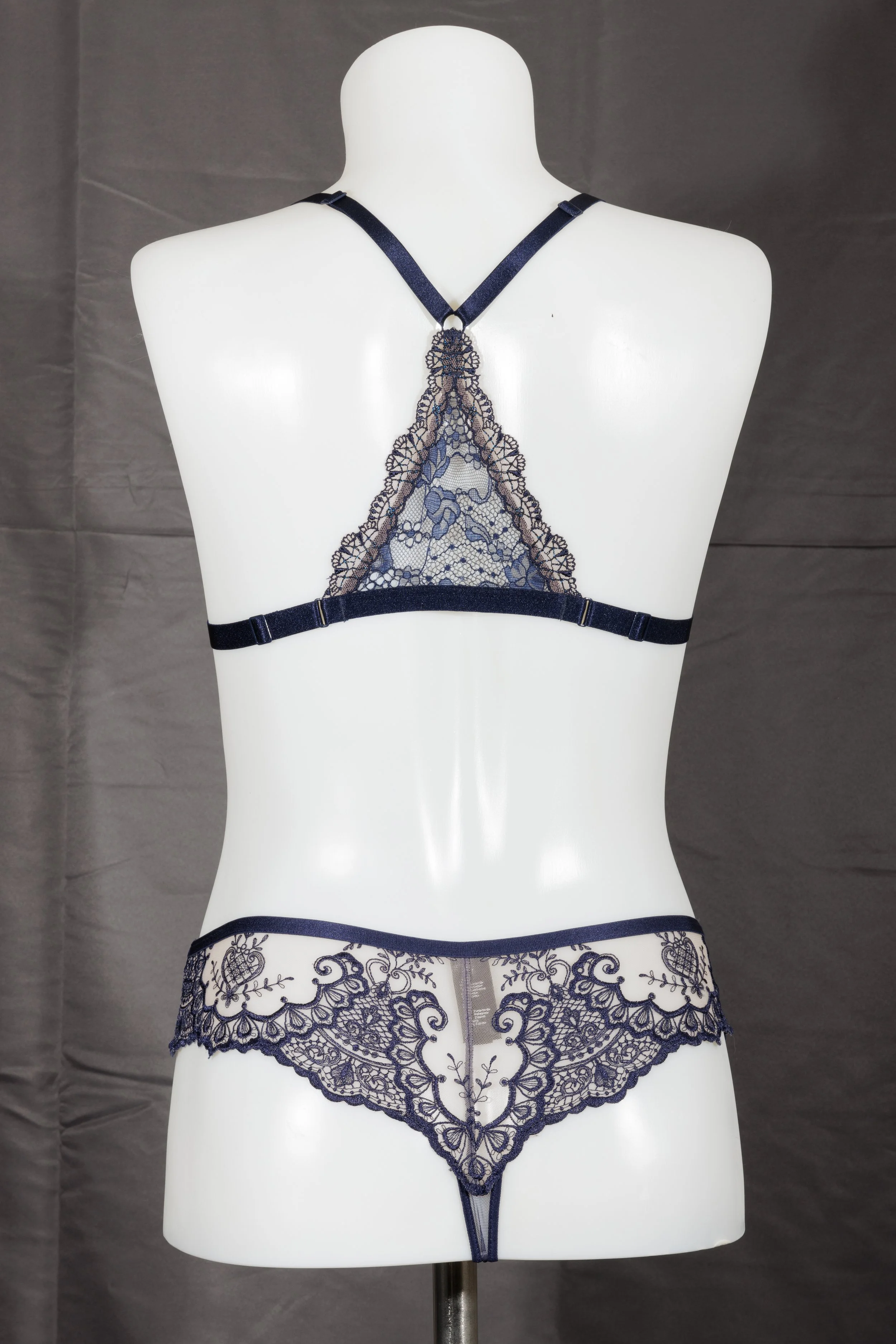 Spitzen Triangel-BH mit Slip, Aubade, dunkelblau, Grösse S (Rücken)