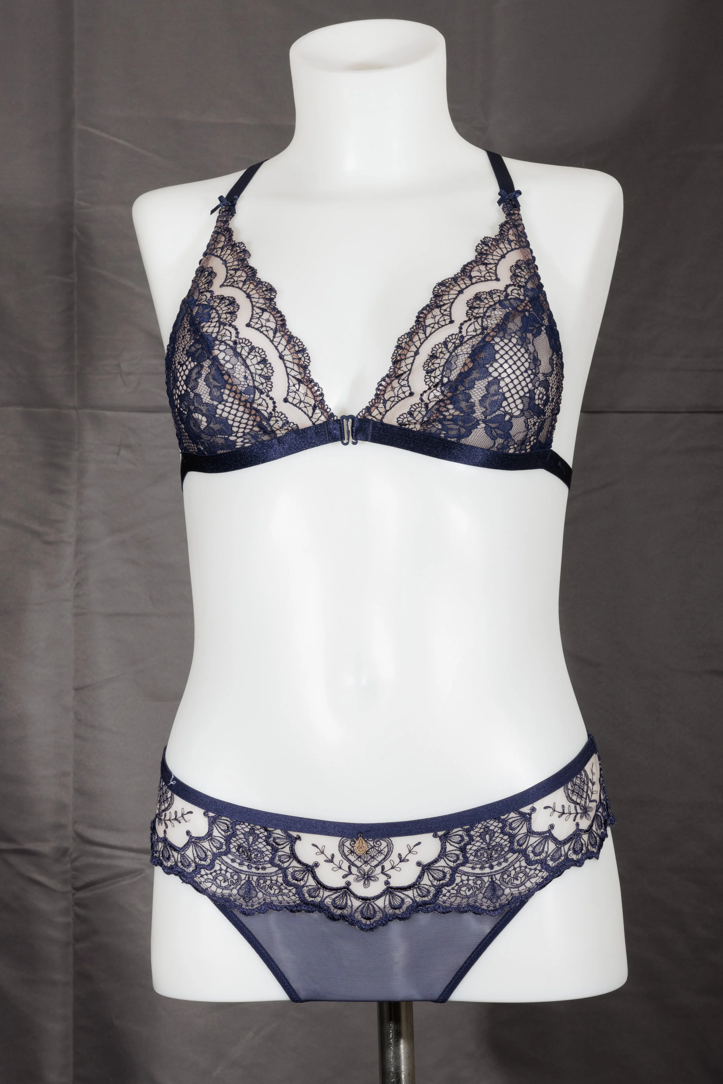 Spitzen Triangel-BH mit Slip, Aubade, dunkelblau, Grösse S (Front)