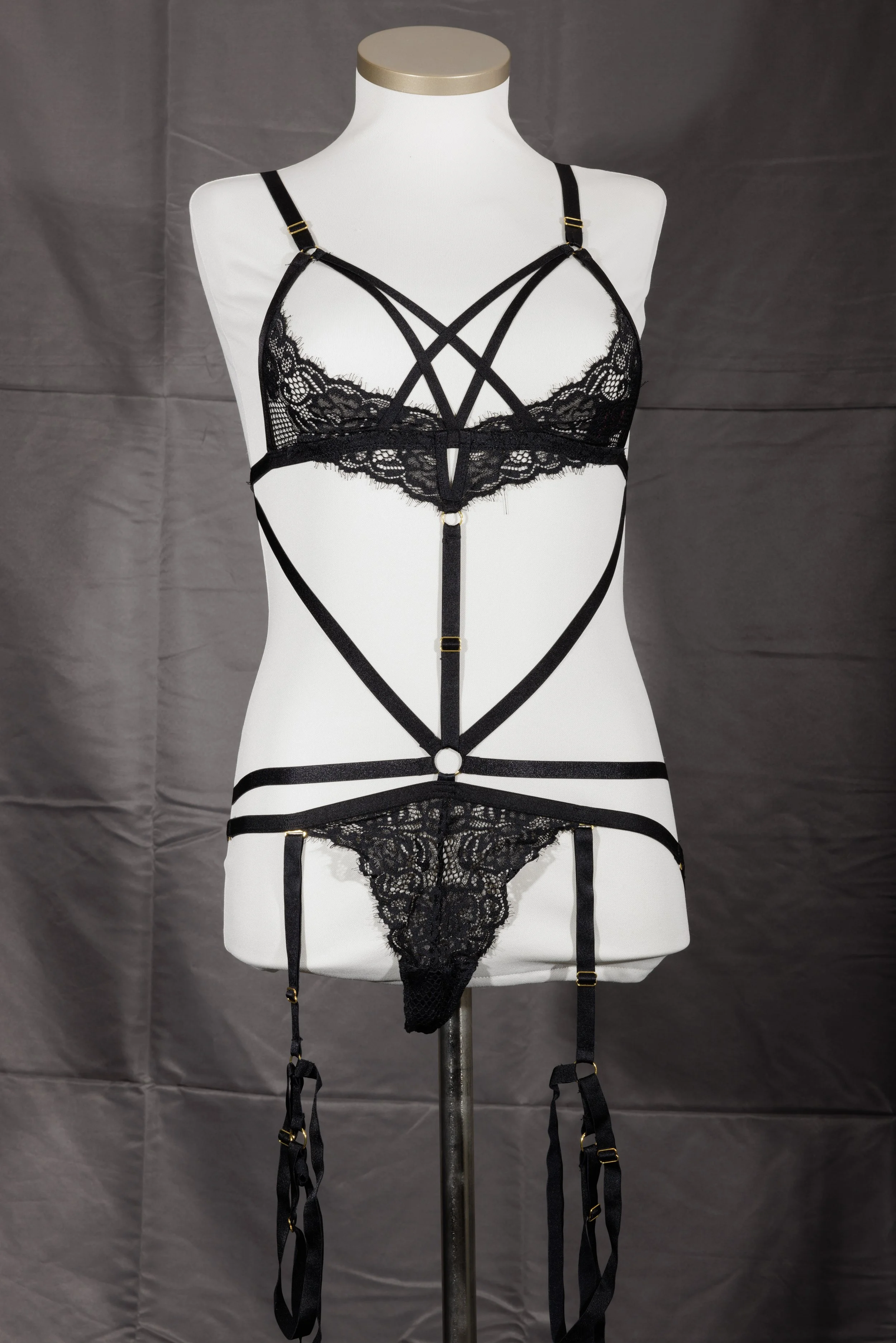 Body mit integriertem Strapsgürtel, schwarz, Grösse S