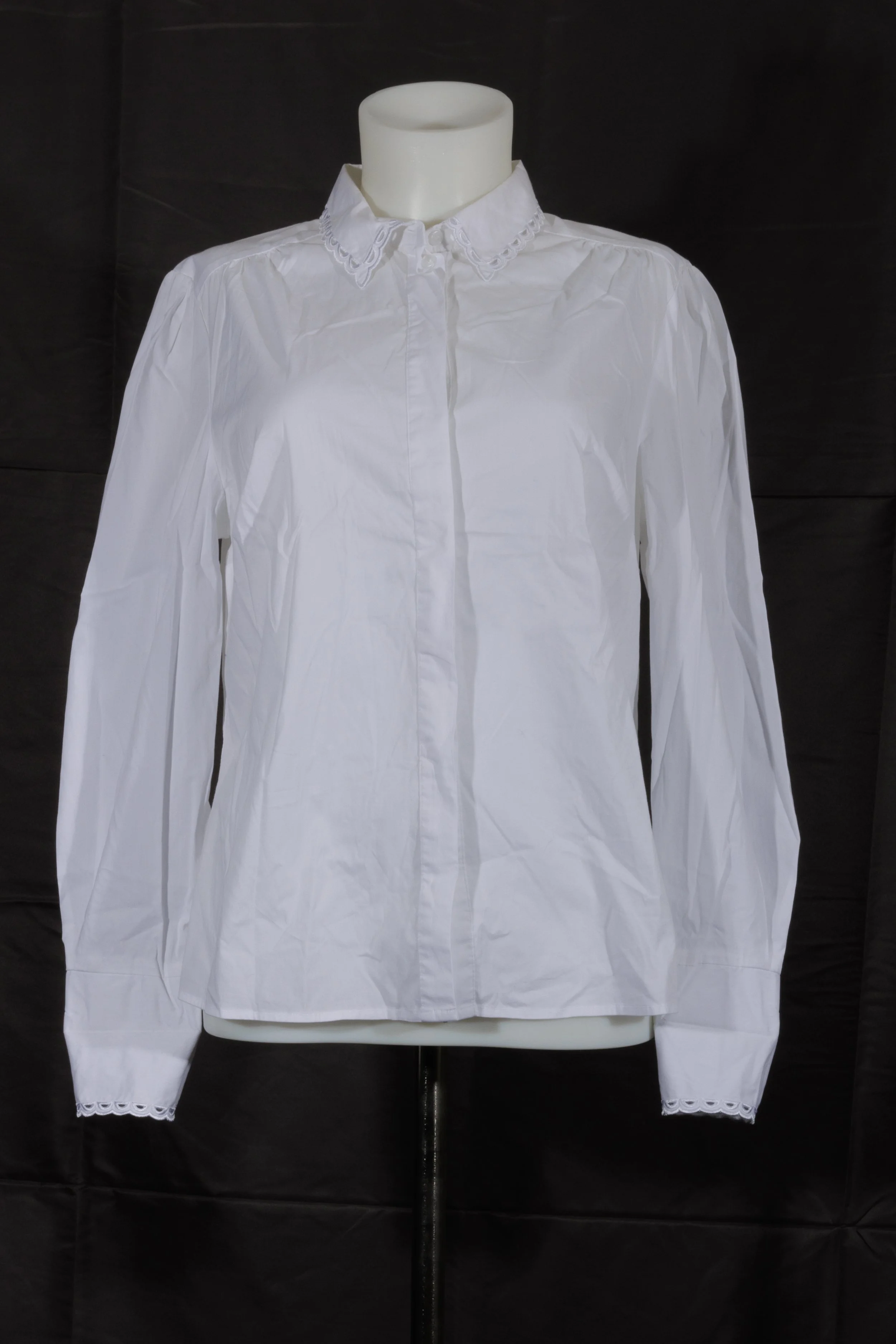 Bluse mit Spitzenapplikationen am Kragen, weiss, Grösse S-M