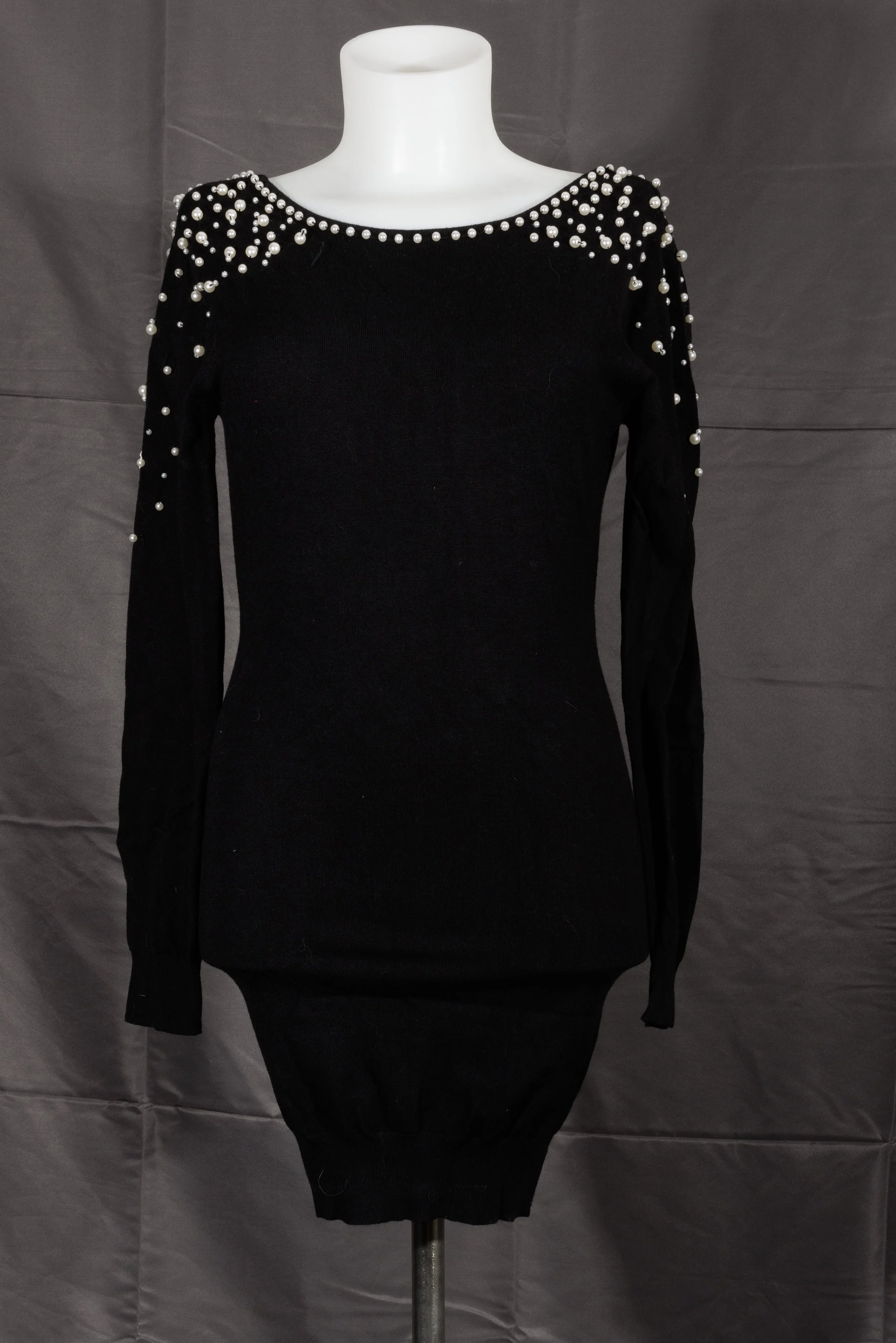 Minikleid mit Rückenausschnitt und Perlen, schwarz, Grösse S-M (Front)