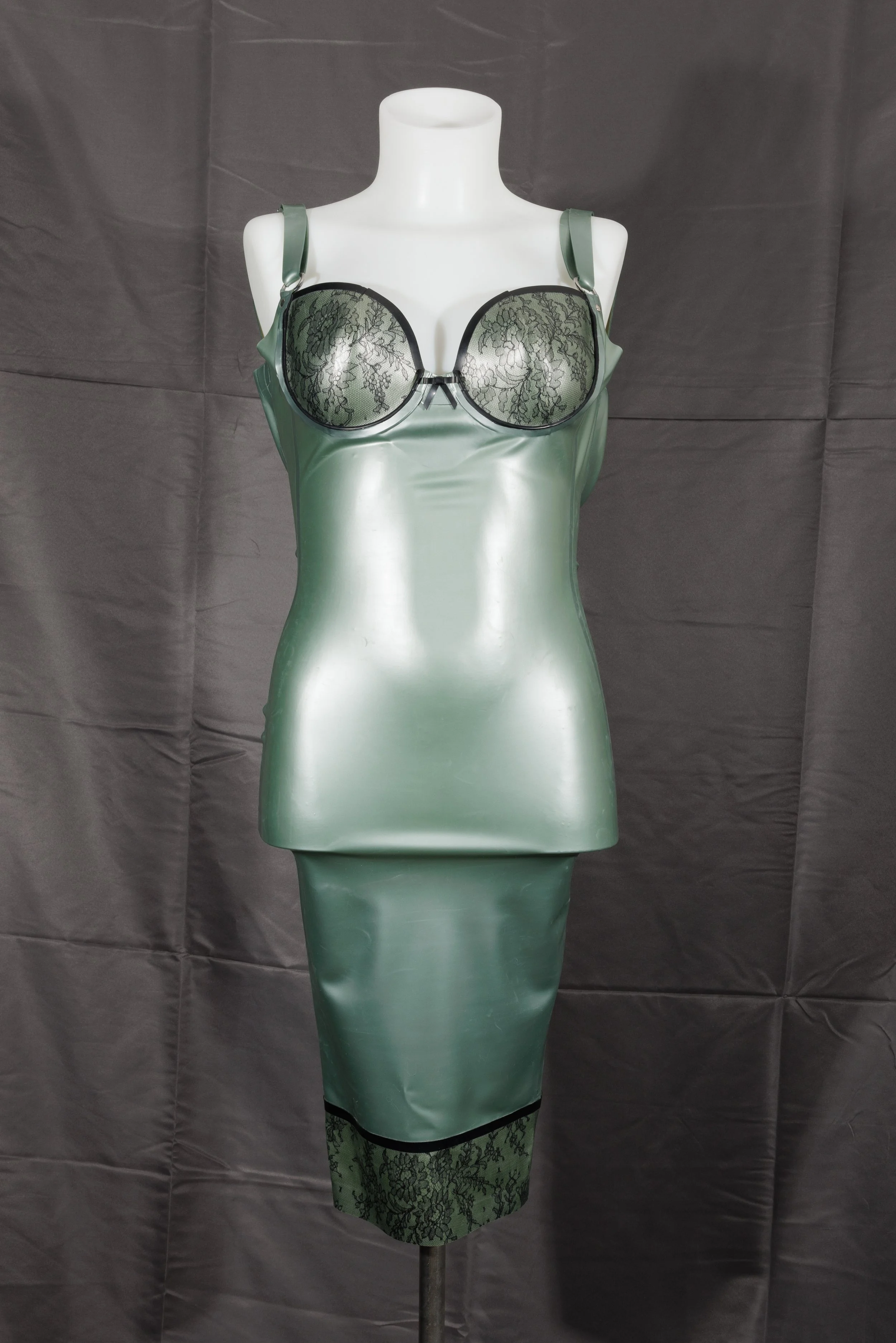 Latexkleid mit integrierten Cups, türkis mit schwarz, Grösse XS